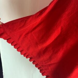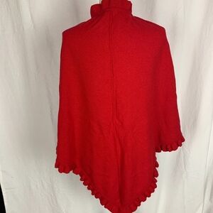 does not have sleeves. very warm. has 2 clips that allows the poncho to be open or closed. measurements are approximations