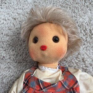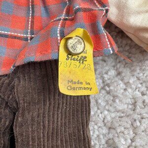 This Steiff doll is rocking its retro plaid vest and brown corduroy pants combo like it's the 70s all over again. With a cheeky smile and made in Germany, it's the kind of vintage charm that makes you say, "Who needs modern dolls when you’ve got this classic cutie?"