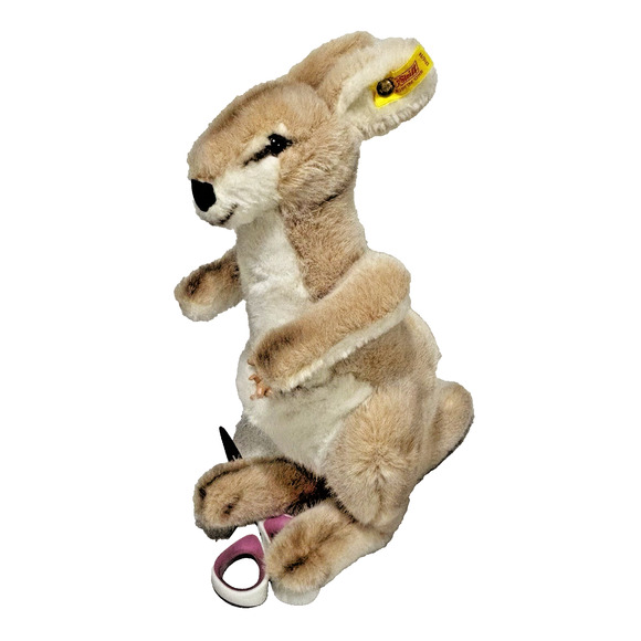 Vintage Steiff Mohair Kangaroo & Plastic Baby Joey Ear Button Tag Stuffed Animal