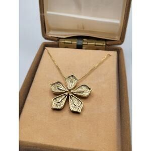 Vintage Steiger’s Gold Tone Flower Pendant Necklace in Original Box