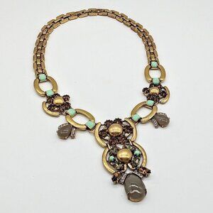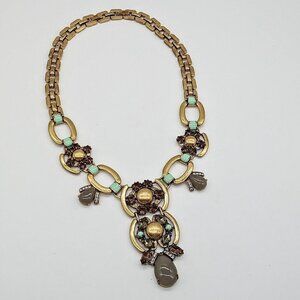 Vintage Stella & Dot Matte Gold-Finish Panther Link Fashion Statement Necklace