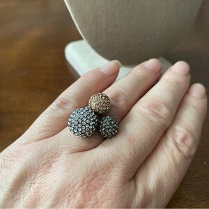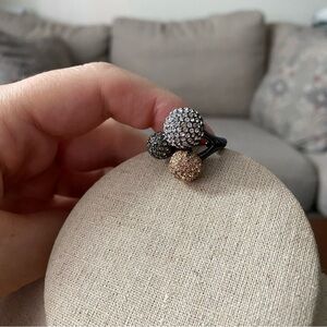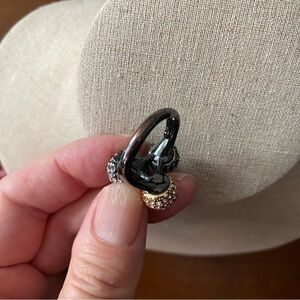 🩷 Vintage Stella and Dot Soirée Rhinestone Gunmetal Cocktail Ring 💍 Coquette