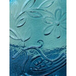 Vintage Blue Glass Embossed Bird & Flower Decorative Bottle With Cork Stopper