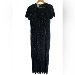 Vintage Stenay 100% Silk Beaded Sequin Long Gown Dress Evening Women’s Size 8
