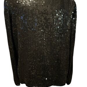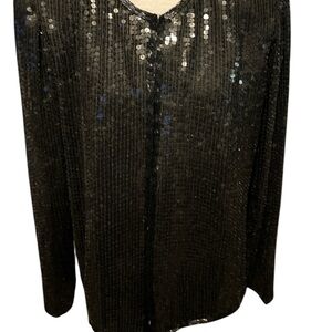 Vintage Stenay Beaded Sequin Silk Jacket Long Sleeve Black Hook & Eye Small