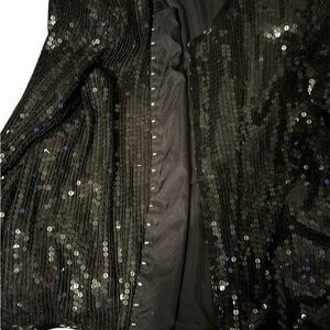 Vintage Stenay Beaded Sequin Silk Jacket Long Sleeve Black Hook & Eye