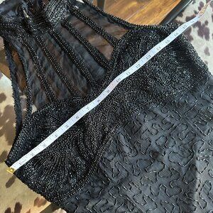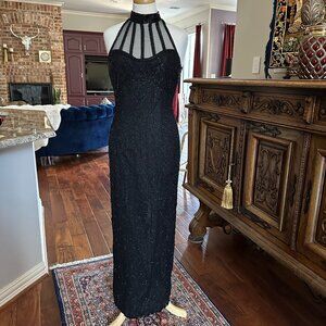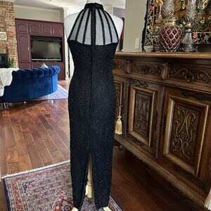 Vintage Stenay Black Silk Beaded Halter Cocktail Gown Sz 8