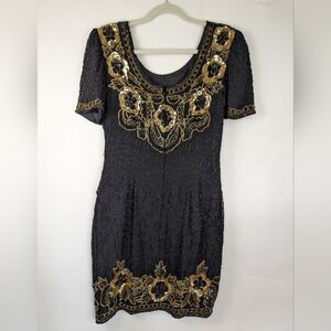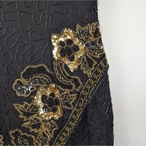 Vintage Stenay Black Silk Beaded Sequin Cocktail Dress – Women's Petite 6 (P6)