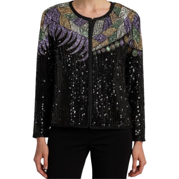 Vintage Stenay Evening Jacket Silk Beaded Sequin 1980's Party Cocktail Black 2X