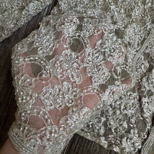 Vintage Stenay Lace Sheer Beaded Open Jacket Womens Embroidered Fairy Cream