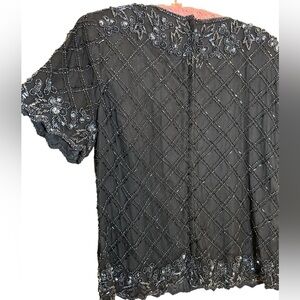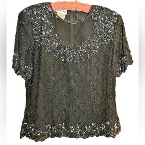 Vintage Stenay Short Sleeve Beaded Silk Evening Top Sheer Neckline Size Large