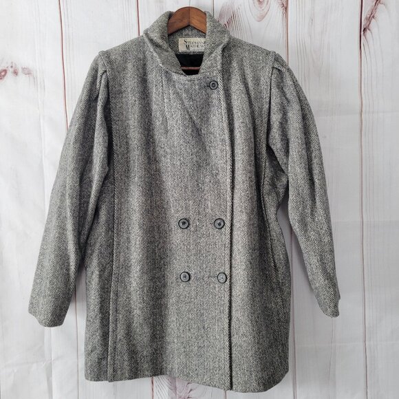 Vintage Stephanie Mathews Gray Wool Jacket Women’s L Button Double Breasted USA