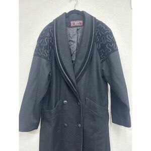 Vintage Stephanie Mathews Wool Trench Coat 10 Black Dark Academia USA Made