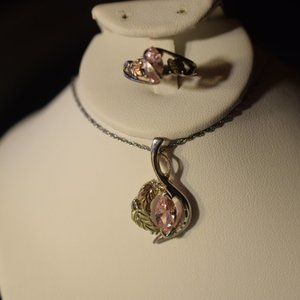 Vintage Sterling 12k. Black Hills Gold Pink CZ Necklace and Ring. Size 7