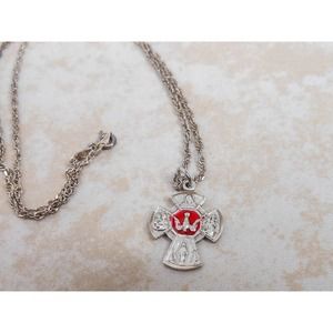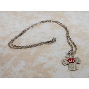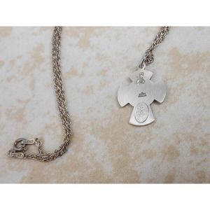 Vintage Sterling 4 Way Saints Cross Charm Pendant Necklace 18 Inch