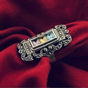 Topaz, Citrine, Amethyst stacked Vintage 925 marked and tested Sterling Silver
