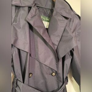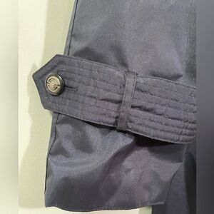 Vintage Sterling Bay Metallic Navy Belted Rain Trench Coat, Size 10P