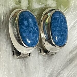 Vintage Sterling Blue Marbled Clip Earrings