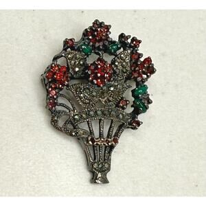 Up for consideration is this beautiful Vintage Sterling Flower Basket Marcasites, Garnets And Green Quartz Brooch/Pendant.