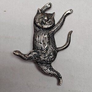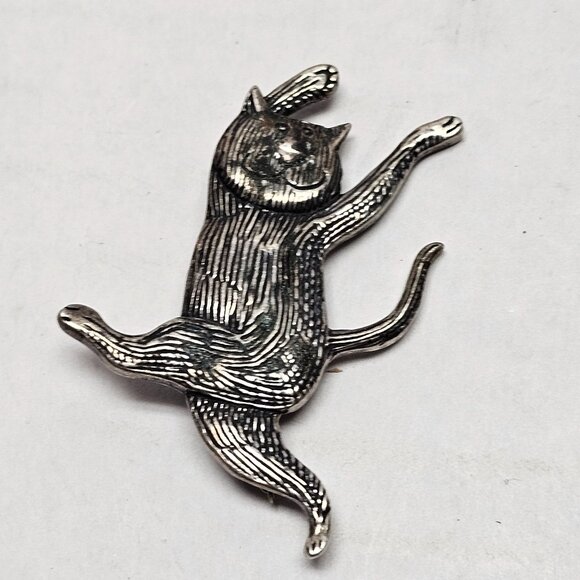 Vintage Sterling Eman Govey Pin Brooch Dancing Happy Feline Cat Edward Gorey
