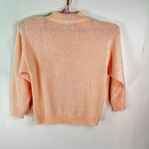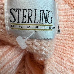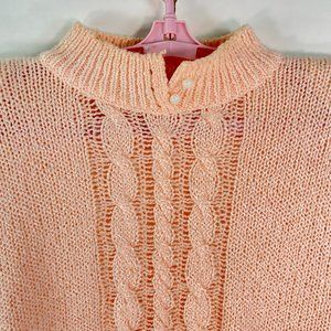 Vintage Sterling Harris Womens Button High Neck Peach Cable Knit Sweater SZ L