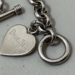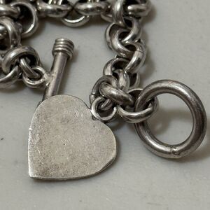 Vintage Sterling Heavy Rolo Bracelet With Heart Engraved Charm