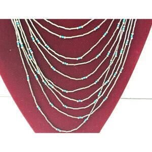 This Vintage Sterling Liquid Silver Turquoise Multi-Strand Necklace is a stunning piece of Southwestern jewelry. Perfect for those who appreciate ethnic and regional jewelry styles, this necklace is a timeless piece that showcases the rich heritage of Native American artisans.
