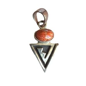 Vintage Sterling Orange Spiny Oyster Shell Signed Pendant Native