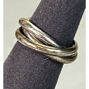 Vintage Sterling Silver 3 Band Rolling Ring Size 7 Interlocking Spinner Style