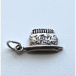 Vintage Sterling Silver 3D Charm Birthday Cake 925 For Bracelet