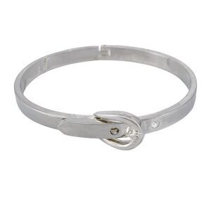 This stylish vintage bangle bracelet features a unique buckle design, crafted from solid sterling silver.