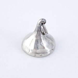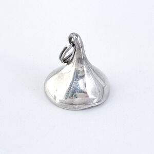 This delightful vintage sterling silver charm captures the iconic shape of a classic chocolate kiss candy. Crafted with a smooth, rounded finish, it brings a playful and nostalgic touch to any charm bracelet or pendant necklace. A sweet gift idea for collectors and candy lovers alike.