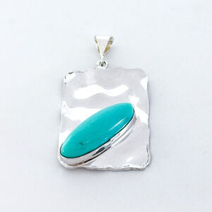 Vintage Sterling Silver 925 3.5cm Turquoise Abstract Rectangle Pendant