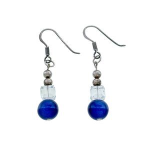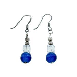 Title: Vintage Sterling Silver 925 4.2cm Blue Bead Dangle Earrings
