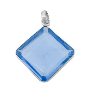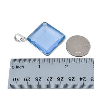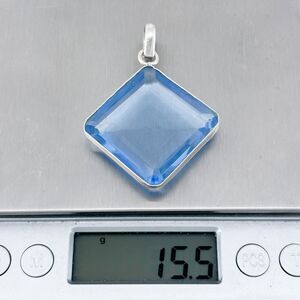 Title: Vintage Sterling Silver 925 5.2cm Square Gem Cut Blue Spinel Pendant