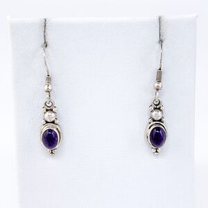 Title: Vintage Sterling Silver 925 Amethyst Dangle Earrings