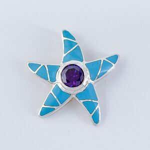 Title: Vintage Sterling Silver 925 Amethyst and Turquoise Starfish Pendant