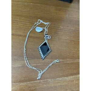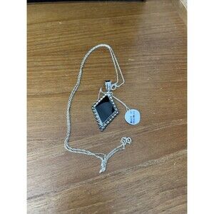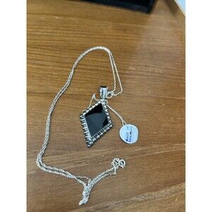 Vintage Sterling Silver 925 Bead Ball Swirl Pattern Border Onyx Charm Pendant
