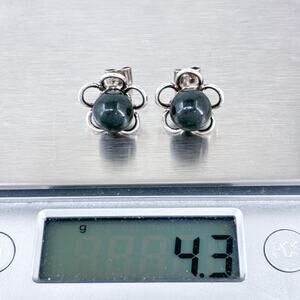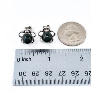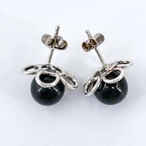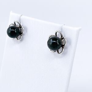 Vintage Sterling Silver 925 Black Pearl Floral Stud Earrings