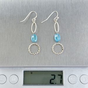 These vintage sterling silver earrings feature an elegant combination of faceted blue crystal beads, oval links, and twisted silver circles. The graceful 4.5cm dangle design adds movement and charm, making them perfect for casual wear or adding a pop of color to special occasions. A delightful blend of sparkle and timeless style.
