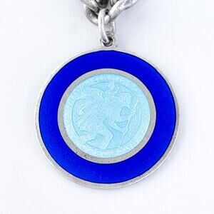 Vintage Sterling Silver 925 Blue St. Christopher Medal Charm Bracelet 7.5"