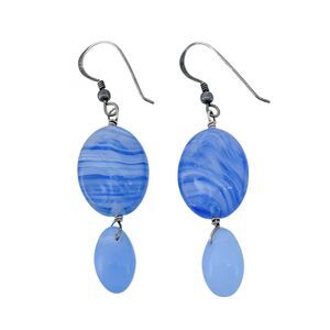 Keywords: Swirled glass, Blue earrings, Dangle earrings, Boho style, Statement jewelry