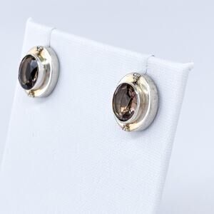 Vintage Sterling Silver 925 Brown Faceted Smoky Quartz Stud Earrings