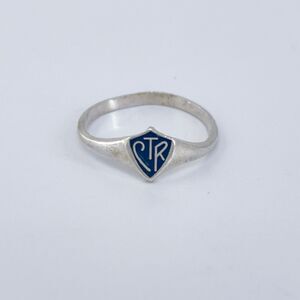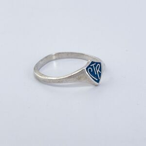 Title: Vintage Sterling Silver 925 CTR Enamel Shield Ring Size 6