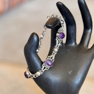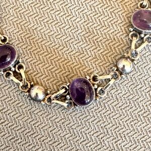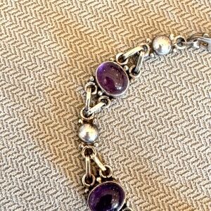 Vintage Sterling Silver 925 Cabochon Amethyst Link Bracelet