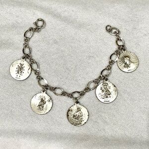 Vintage Sterling Silver 925 Catholic Christian Charm Bracelet Religious Mary