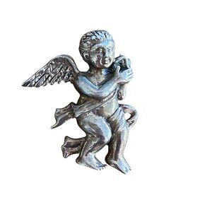 Vintage Sterling Silver 925 Cherub Angel Brooch Pendant 1.5". Excellent pre-owned condition.