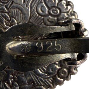 Vintage Sterling Silver 925 Clip-On Earrings Floral Etched MOP Cabochons Unique