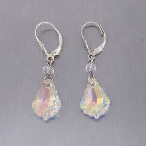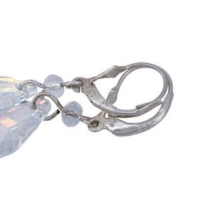 These vintage sterling silver drop earrings showcase dazzling crystal pendants with a stunning iridescent glow. Perfect for weddings, evening events, or adding sparkle to your everyday style. Their timeless elegance makes them a must-have for any jewelry collection.