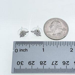 Title: Vintage Sterling Silver 925 Cubic Zirconia Leaf Stud Earrings